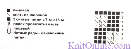 5 ряд: 3 петли снять изн., 3 петли лиц.