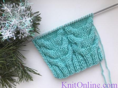 Простой узор из двух кос, отлично подойдет для шапок. Подходит для пряжи средней толщины.